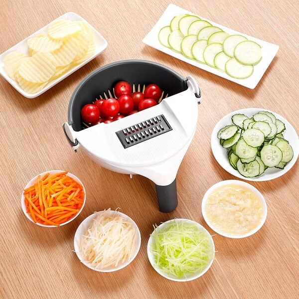 সবজি কাটা এবং ধোয়া সবকিছু এখন এক মেশিনে করা সম্ভব এই ভেজিটেবল কাটার দিয়ে।ড্রেনের ঝুড়ির সাথে ভেজিটেবল কাটার।সরাসরি পাত্রের উপরই কাটা ও ধোয়া যায়।ব্লেডগুলো Stainless Steel হওয়ায় খুবই মজবুত।